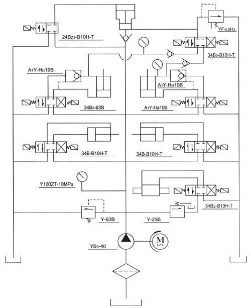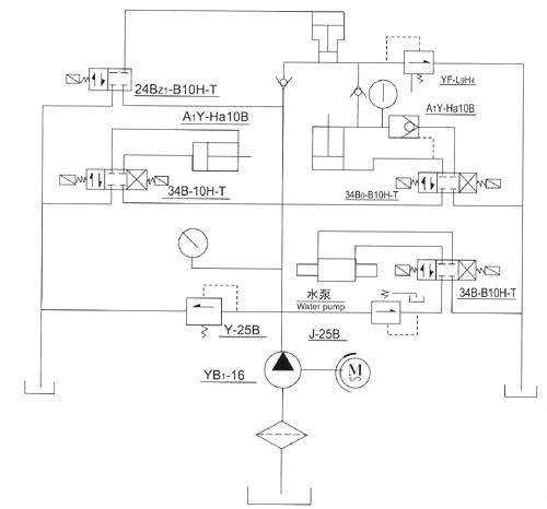三、接通電源,按油泵啟動按鈕,檢查電機轉動方向,是否正確(順時針方向)進行5 — 10分鐘空載運轉后,調節油泵壓力在5 0MPa進行試機,各種動作,檢查各管路有無泄漏,發現不良現象,應立即停機排除。