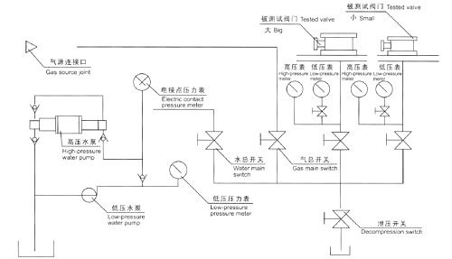 六、液壓供壓水泵開始工作前,先調節好電接點壓力表與被試驗閥門壓力相同,然后進行工作。